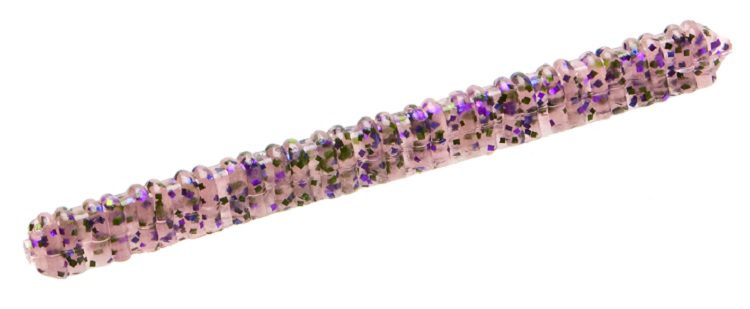 The Zoom Centipede is the ultimate Carolina-rigging dynamite, the finesse option that everyone else has unsuccessfully tried to copy. It looks like it shouldn’t have much action, but it darts and glides with a simple twitch of the rod. In addition to fishing it on the Carolina rig, you can dropshot it or put it on the back of a shakey head. In fact, with its flat bottom, on a jighead it’ll skip a mile under docks and overhanging brush.