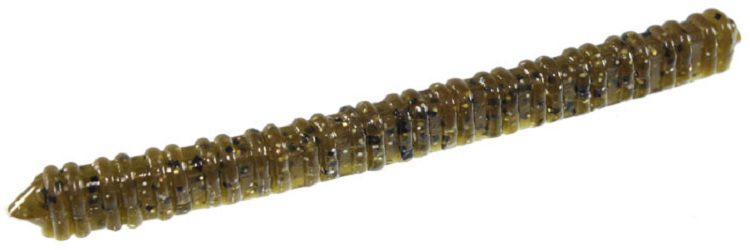 The Zoom Centipede is the ultimate Carolina-rigging dynamite, the finesse option that everyone else has unsuccessfully tried to copy. It looks like it shouldn’t have much action, but it darts and glides with a simple twitch of the rod. In addition to fishing it on the Carolina rig, you can dropshot it or put it on the back of a shakey head. In fact, with its flat bottom, on a jighead it’ll skip a mile under docks and overhanging brush.